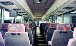 comfortable interiors feature TVs, DVD Players, reclining deep cushion